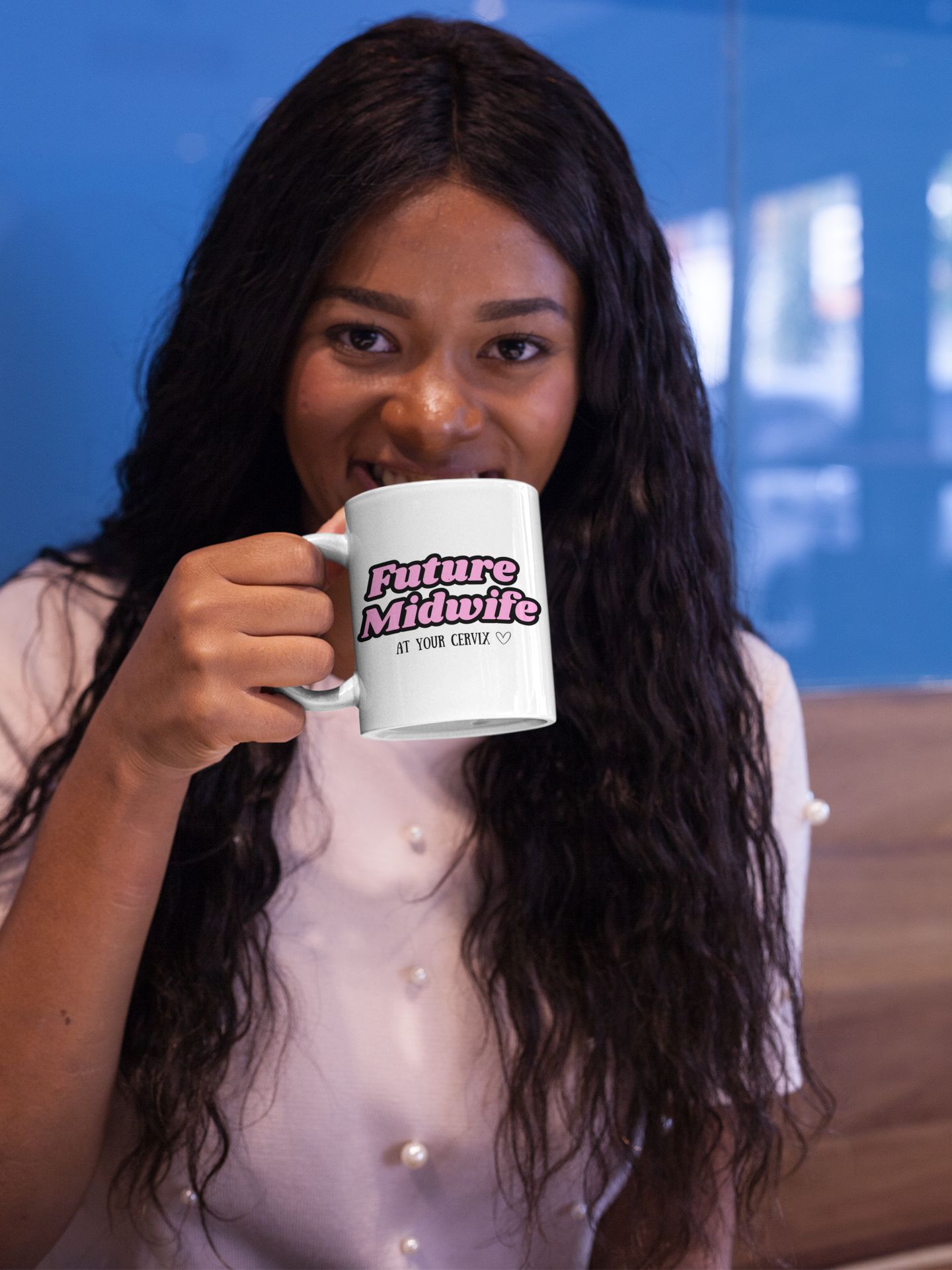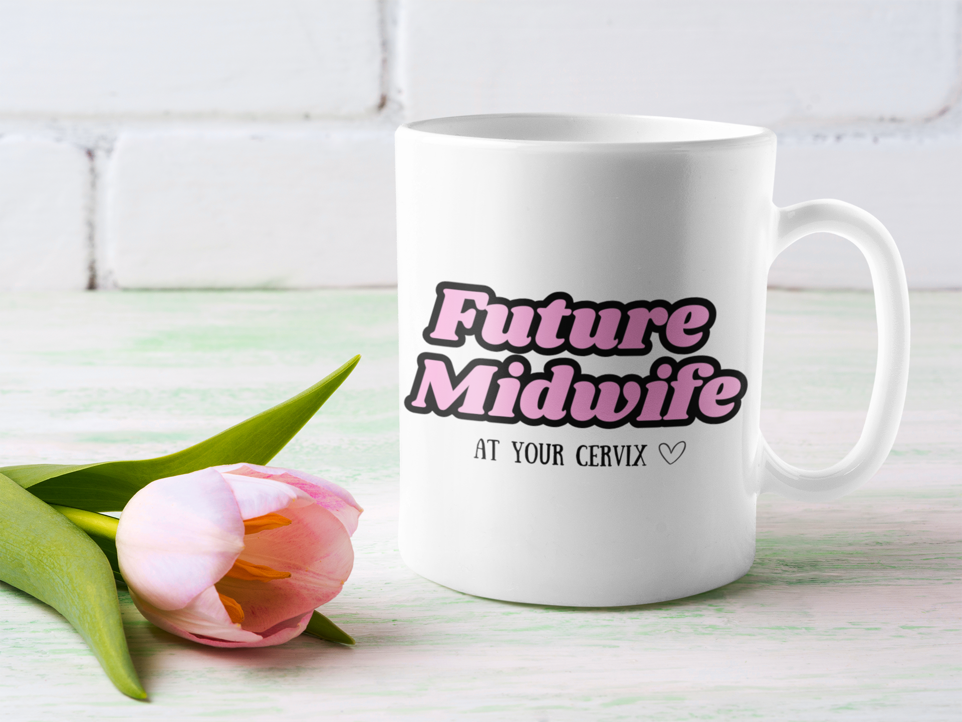 Perfect for aspiring midwives, this "Future Midwife – At Your Cervix" mug combines humour and passion for a truly unique gift! With its playful text in soft pink and bold black, this 11-ounce ceramic mug is a great way to celebrate those studying or dreaming of a career in midwifery. Whether it’s used for a morning cuppa or an afternoon tea break, this mug is sure to bring a smile and a bit of inspiration to any future midwife’s day.